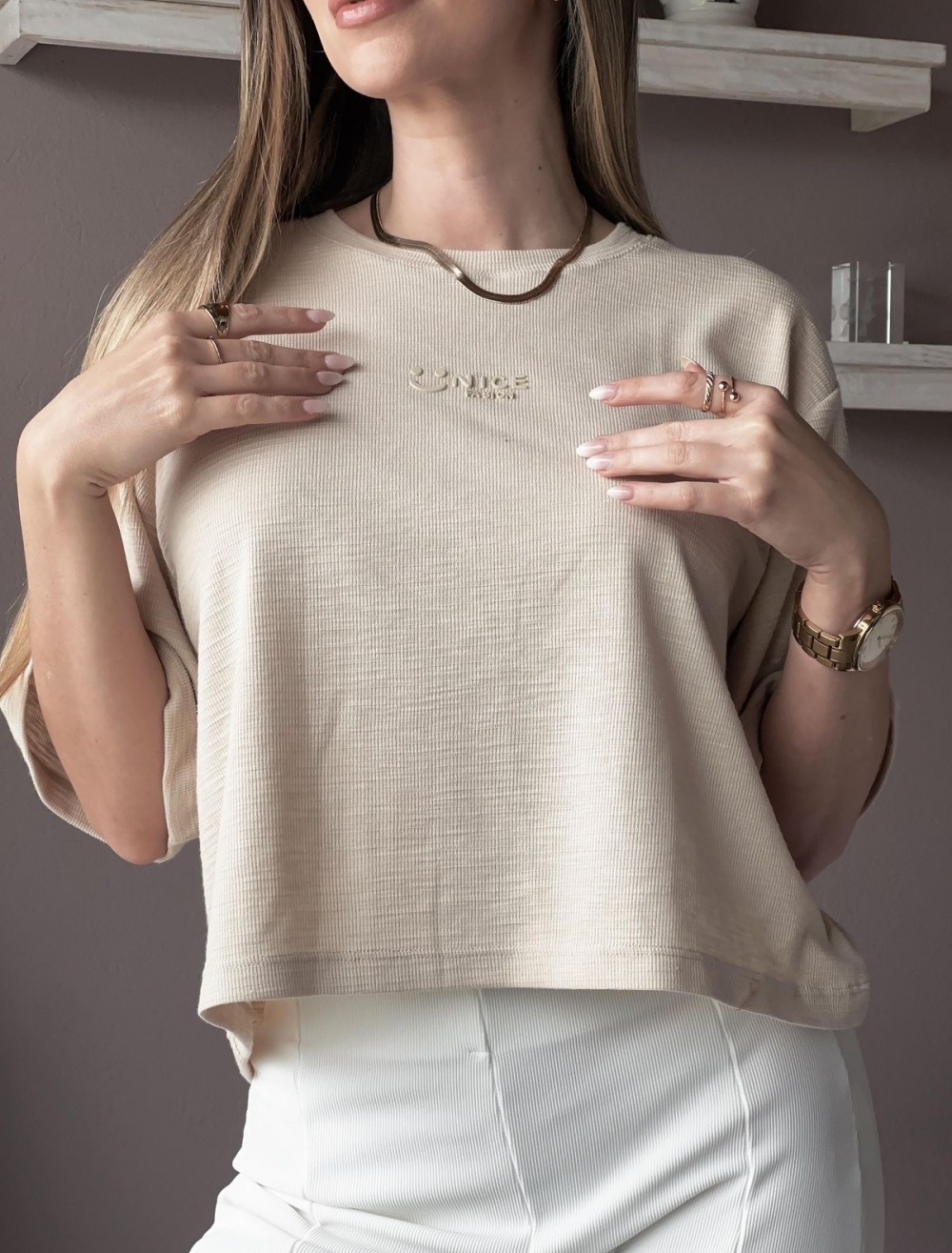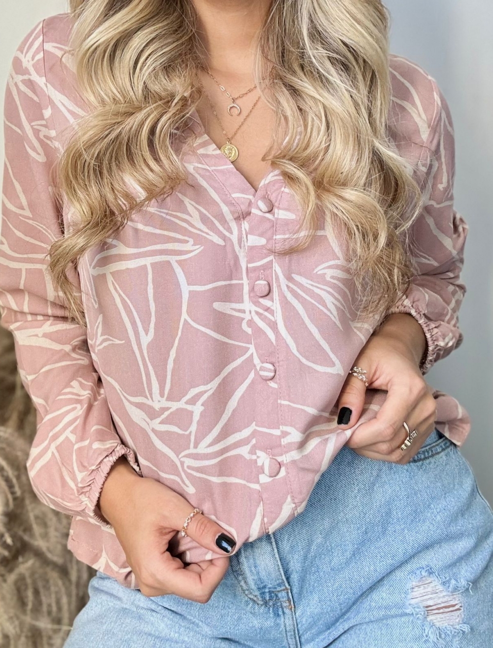BLUSA CUELLO V CHALIS ESTAMPADO BOTÓN FORRADO
