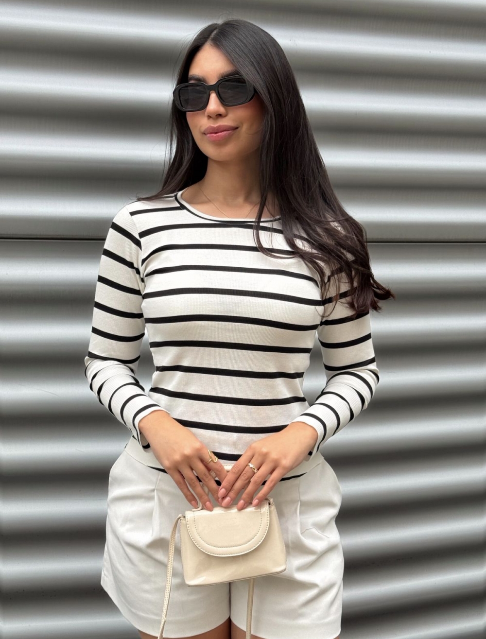 DUO CHALECO EN LINO COLMENA RAYAS Y TOP