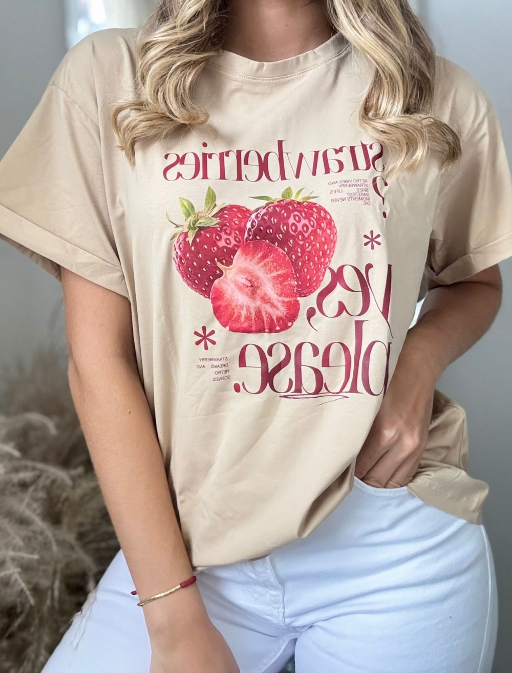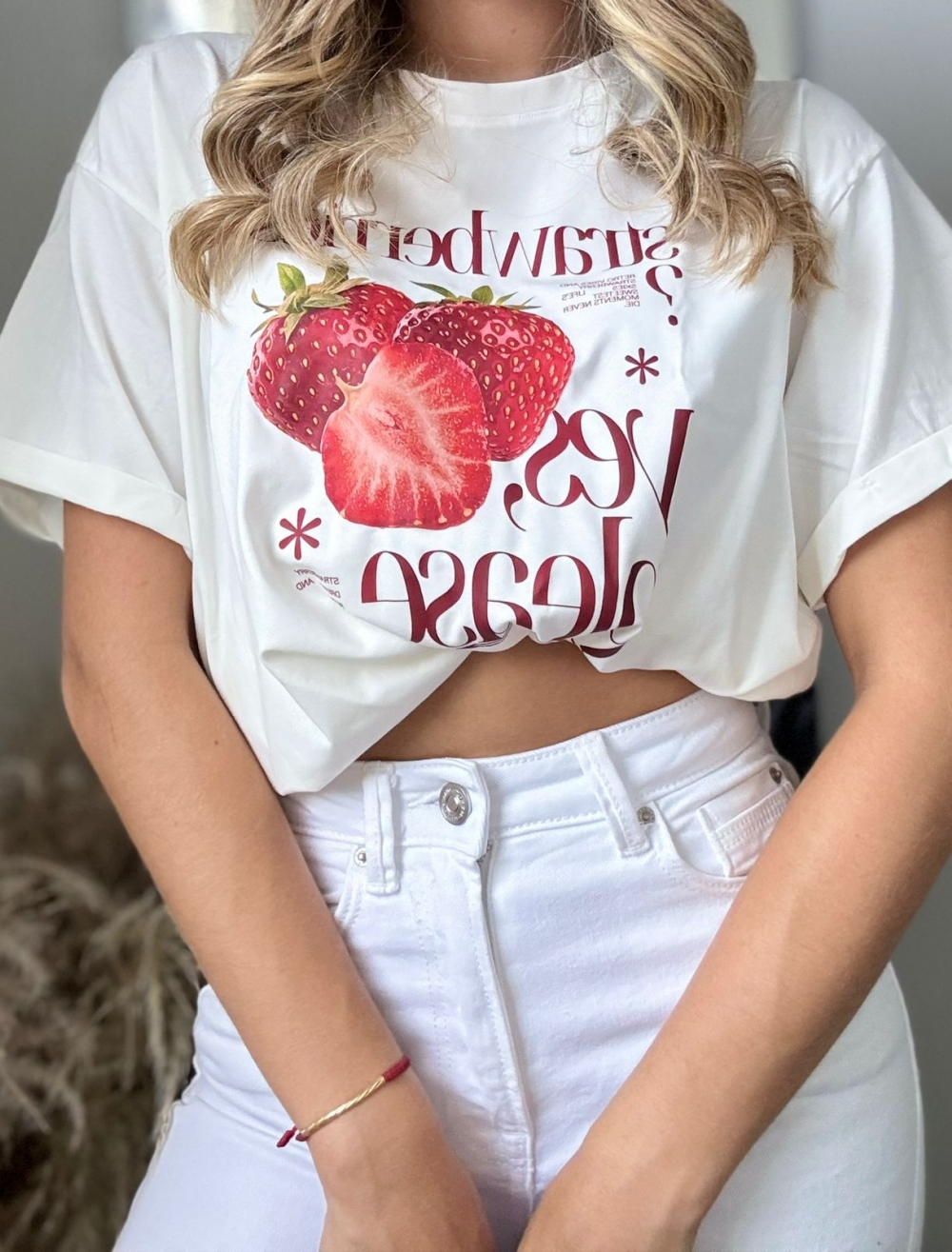 CAMISETA CUELLO REDONDO JASPEADA ESTAMPADO CEREZA