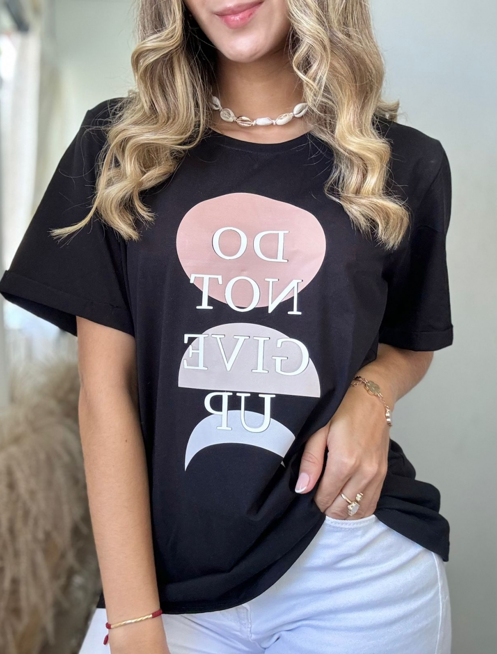 CAMISETA CUELLO REDONDO ESTAMPADO DO NOT GIVE UP PLUS