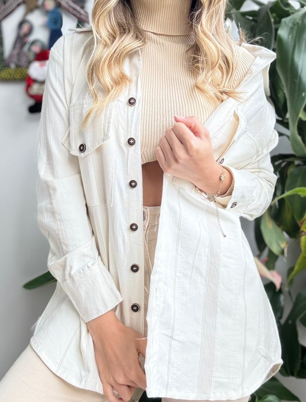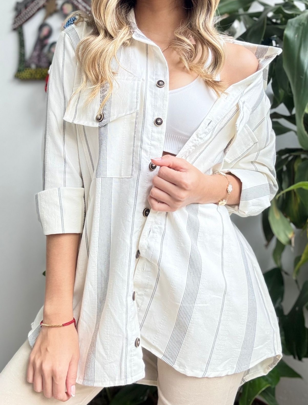 CHAQUETA OVERSIZE LINO RAYAS
