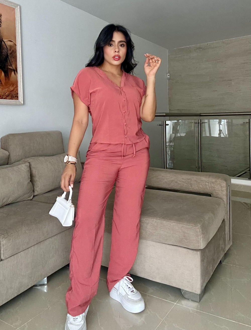 CONJUNTO PANTALÓN TELA PLANA CON TEXTURA