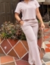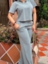 CONJUNTO CUELLO Y PERILLA TEJIDA EN TELA GALLETA