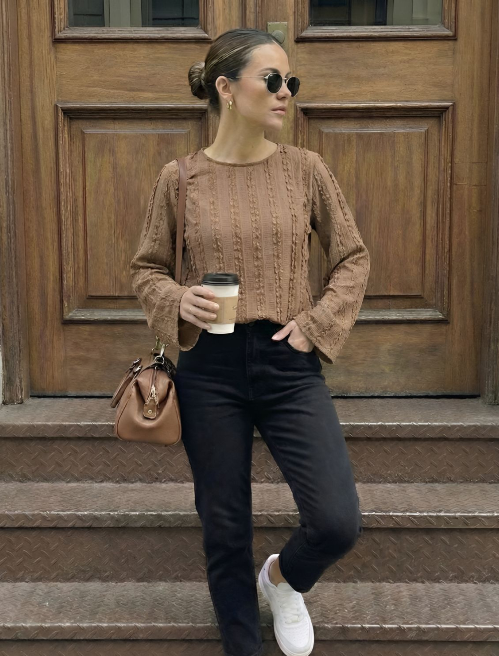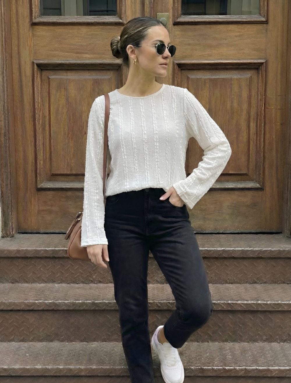 Descripción del Producto: Aporta un toque de textura y estilo a tu día a día con esta versátil blusa de manga larga. Su diseño presenta un sutil y elegante patrón en relieve de líneas verticales que le da un aspecto único y contemporáneo. Cuenta con un cuello redondo clásico y mangas largas con un ligero corte acampanado en los puños, ofreciendo un ajuste relajado, fluido y muy cómodo gracias a la flexibilidad de su tejido. Es perfecta para combinar con tus jeans de confianza o pantalones de tiro alto, ideal para lograr un look casual impecable de fin de semana o para una salida relajada.