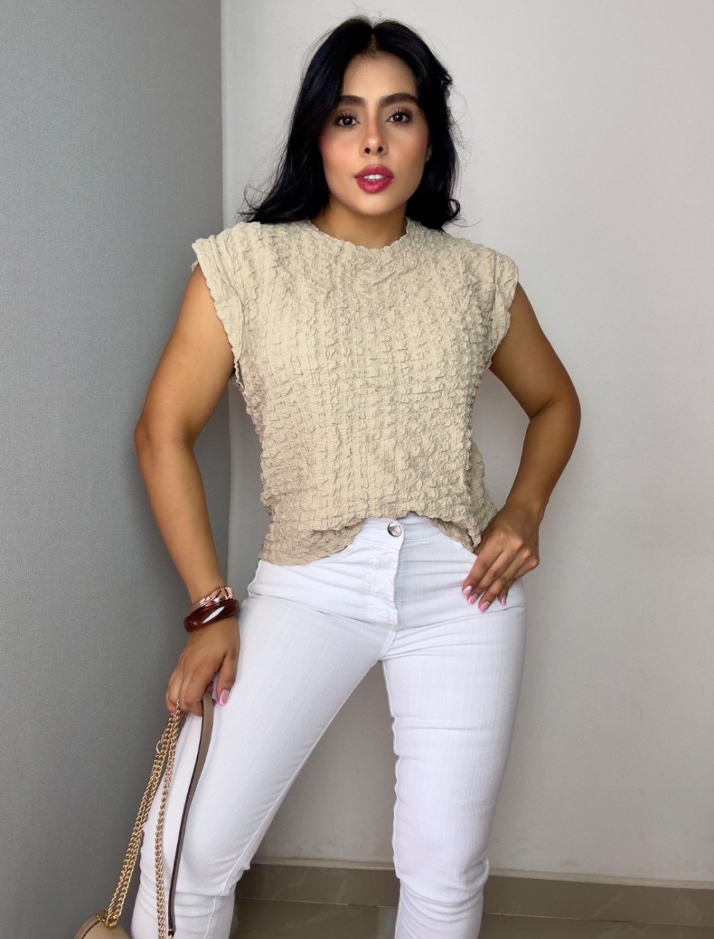 BLUSA TELA CORRUGADA CUELLO REDONDO