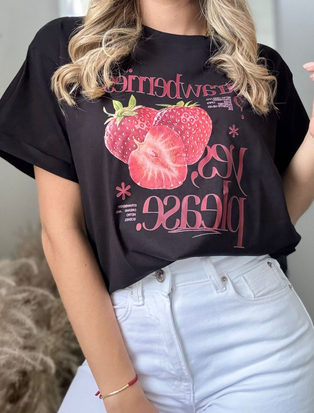 CAMISETA CUELLO REDONDO JASPEADA ESTAMPADO CEREZA