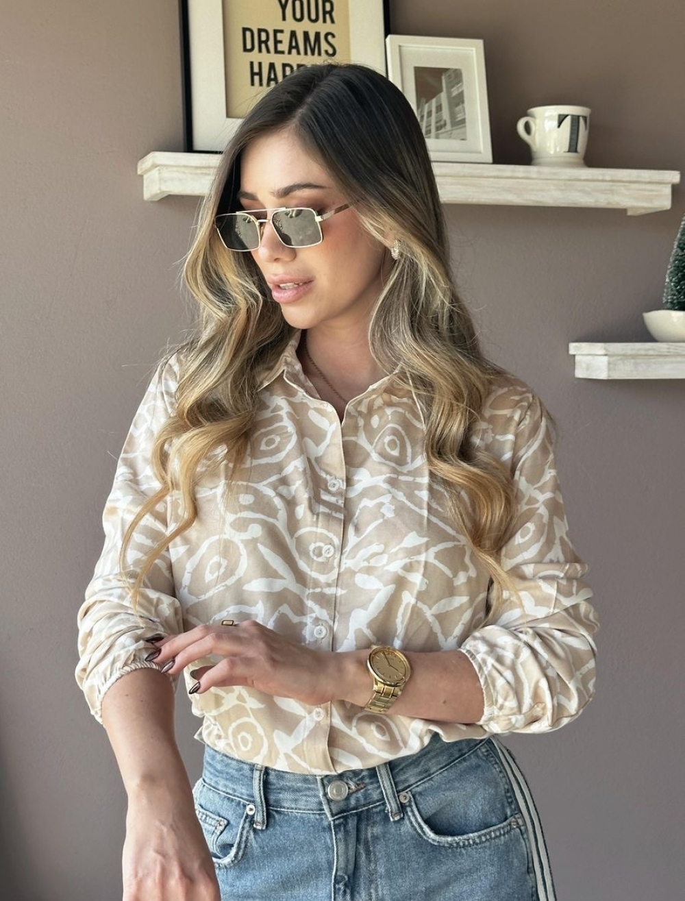 CAMISERA MANGA LARGA ENRESORTADA LINO ESTAMPADO
