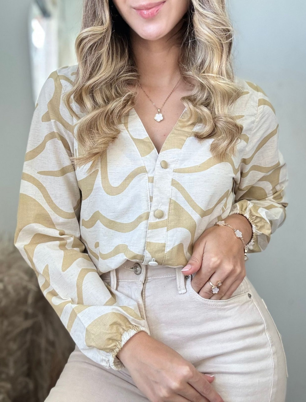CAMISA MANGA LARGA CUELLO V LINO ESTAMPADO
