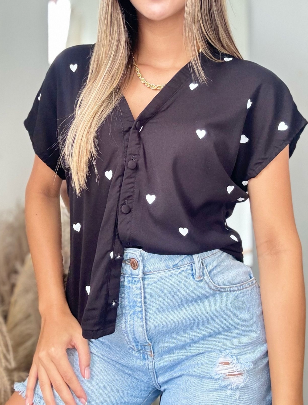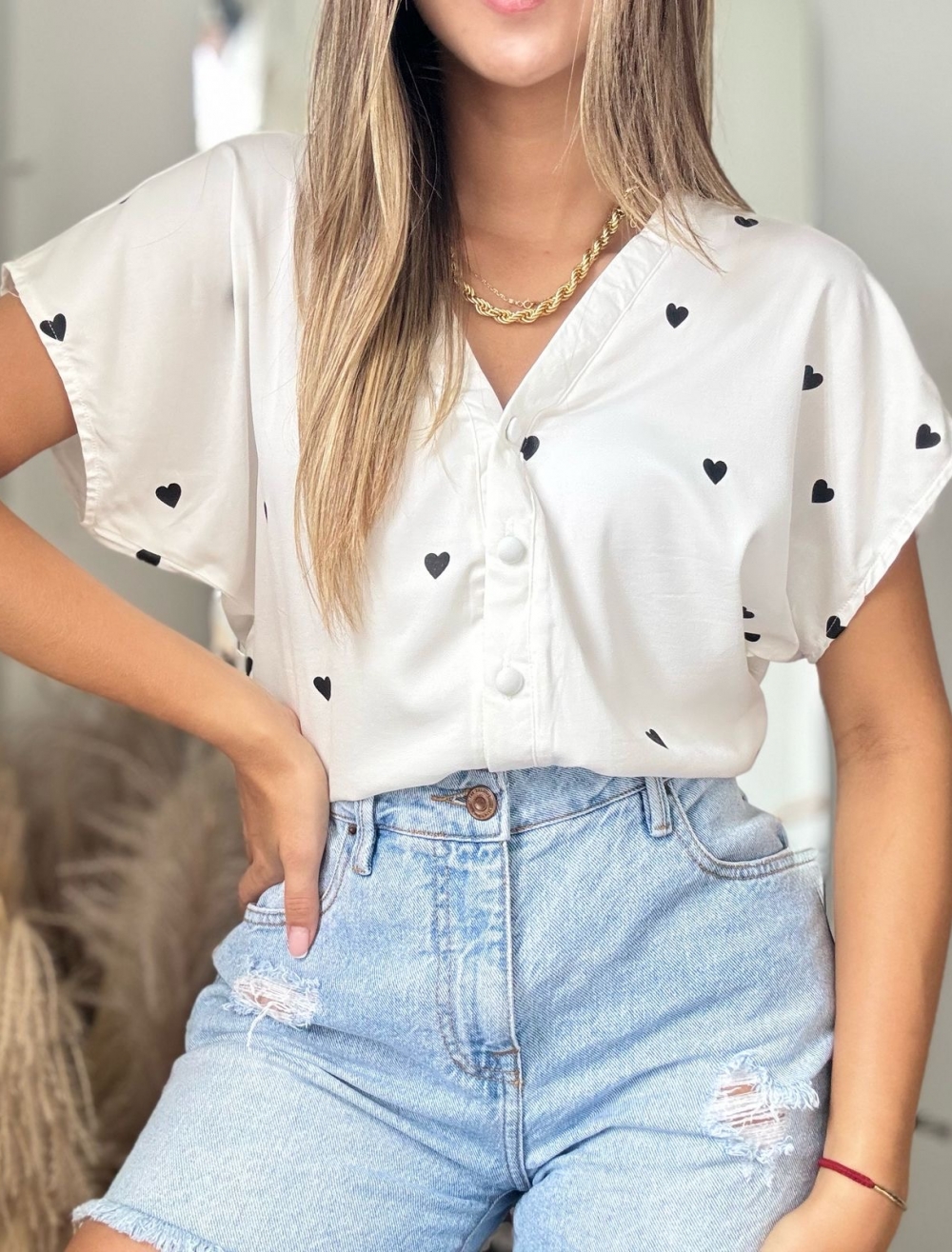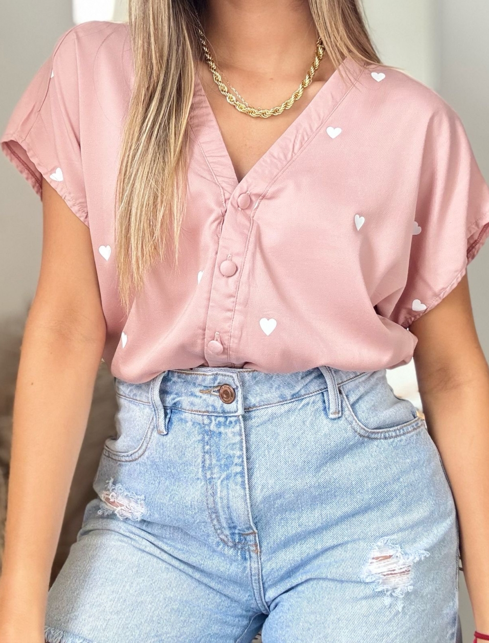 CAMISERA CUELLO V MANGA CORTA ESTAMPADO CORAZONES