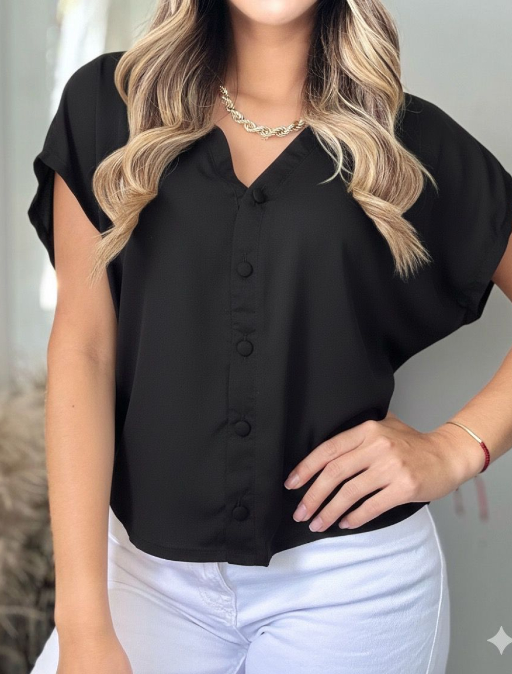 CAMISERA CUELLO V MANGA CORTA CHALIS FONDO ENTERO