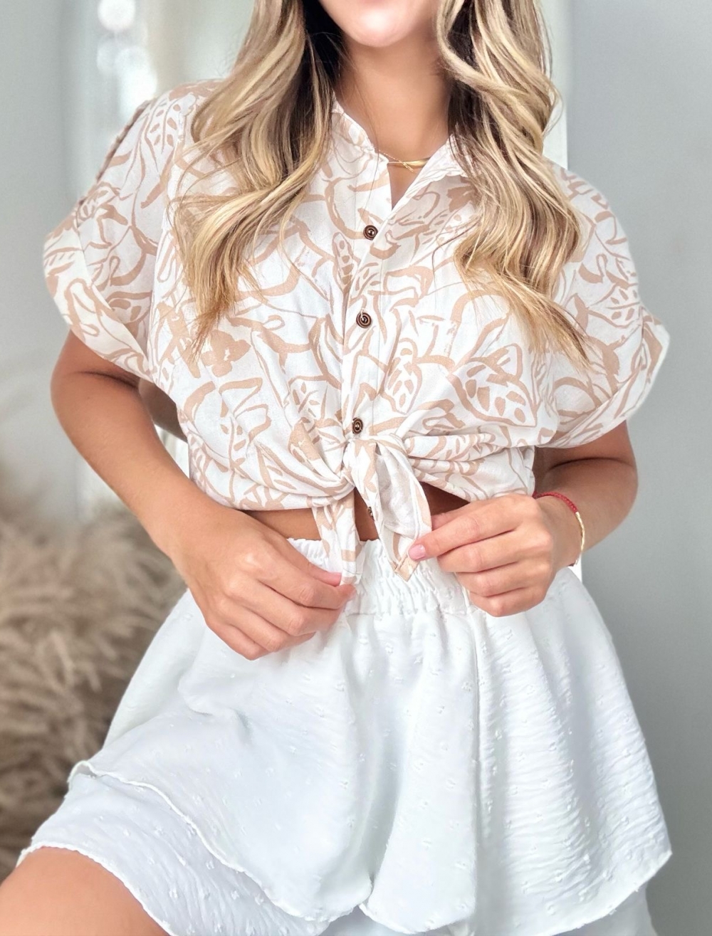 CAMISERA LINO ESTAMPADO CON CHARRETERA EN HOMBRO