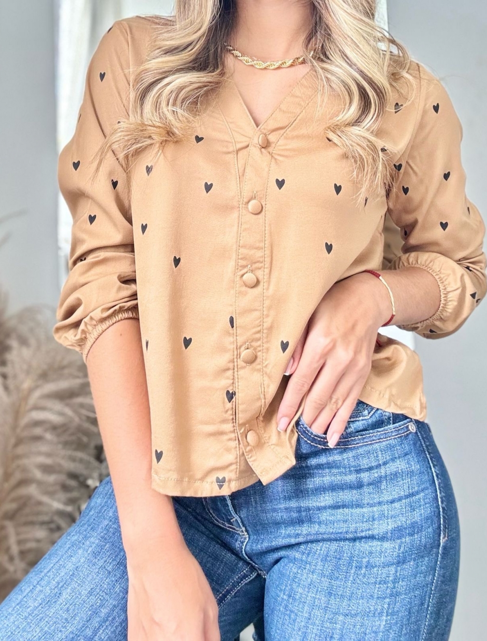 CAMISERA CUELLO V MANGA LARGA CHALIS ESTAMPADO CORAZONES