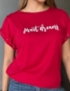 BLUSA CUELLO REDONDO BOTON PERLA LETRERO Y TACHES