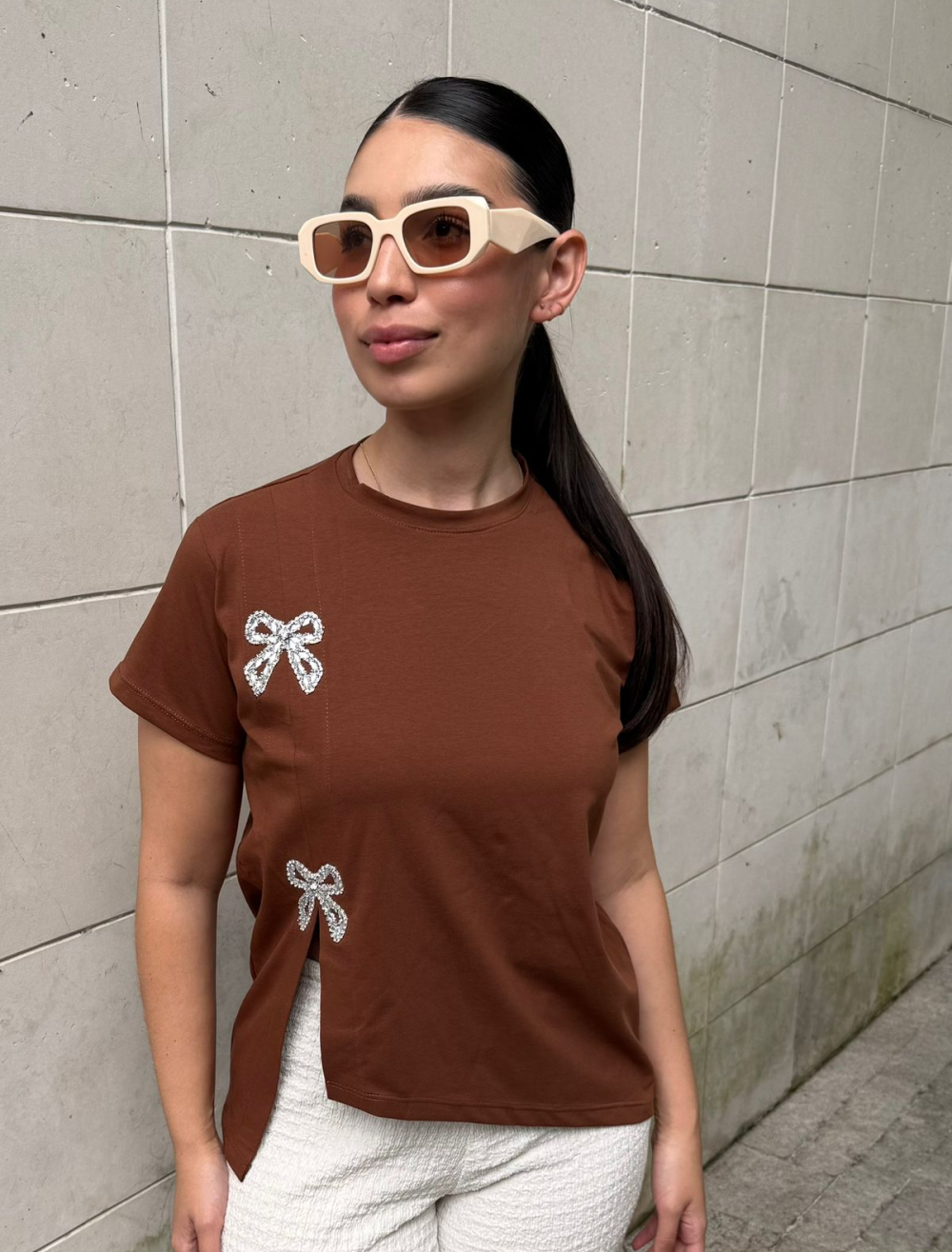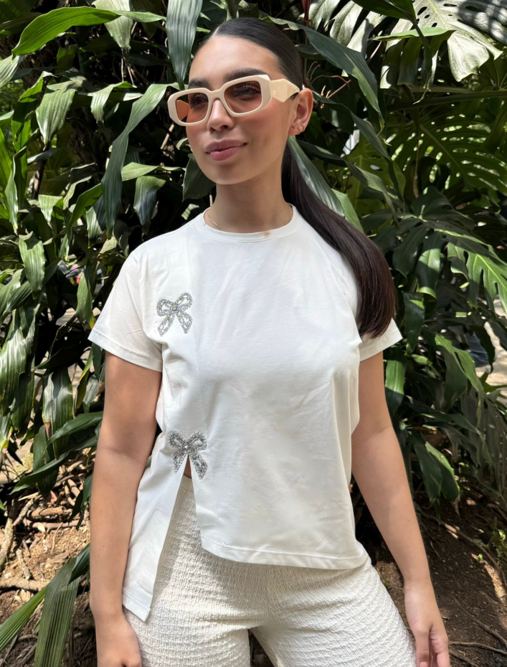 CAMISETA LICRA FRÍA PERILLA COSTADO FRENTE MOÑOS BRILLANTES