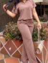 CONJUNTO CUELLO Y PERILLA TEJIDA EN TELA GALLETA