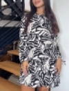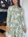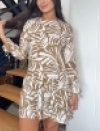 VESTIDO MANGA LARGA EN CHALIS ESTAMPADO CON BOLERO